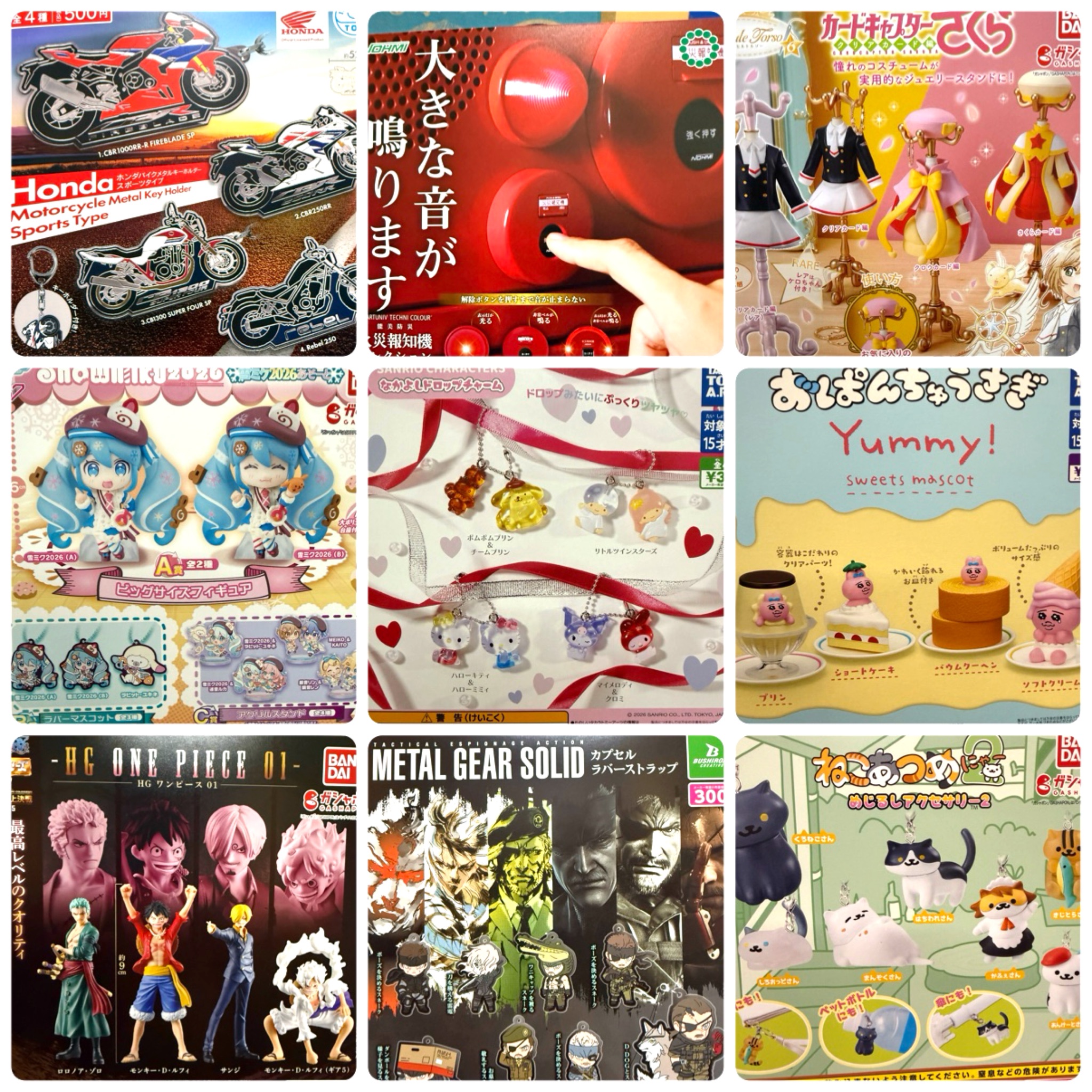 ■2月17日入荷ガチャ一覧◆#サンリオキャラクターズ #なかよしドロップチャーム #おぱんちゅうさぎ #Yummyスイーツマスコット #ねこあつめ #めじるしアクセサリー #カードキャプターさくら #カプセルトルソー #初音ミク #ガシャポンくじ #ワンピース #HGシリーズ #メタルギア #カプセルラバーマスコット #HONDA #バイクメタルキーホルダー #火災報知器コレクション■ ガチャガチャ 2026年2月17日 2月17日入荷ガチャ情報! 関連