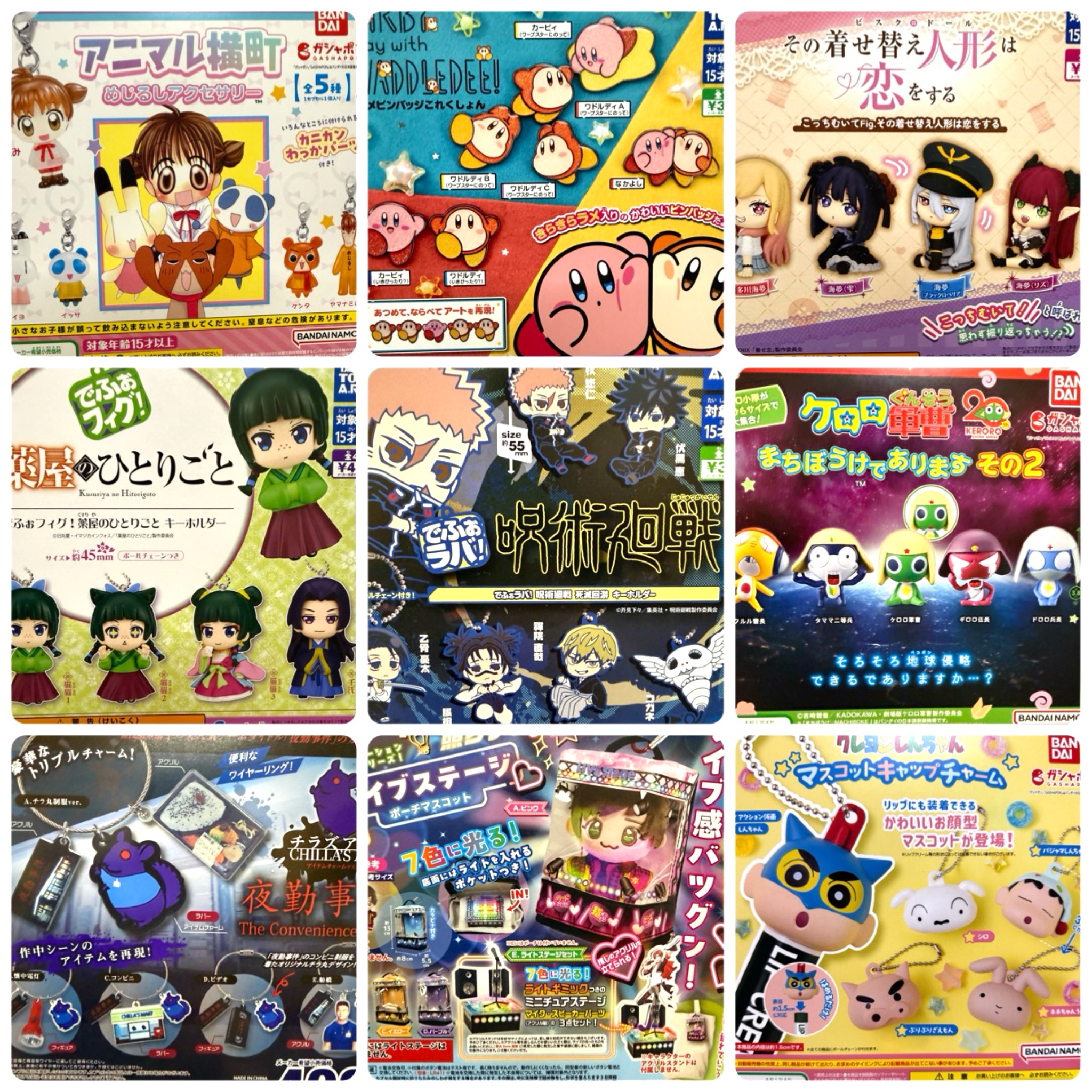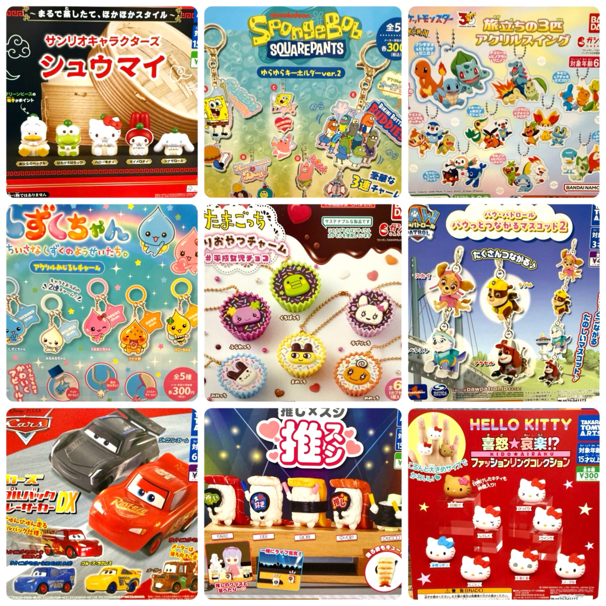 3月18日入荷ガチャ一覧 #ハローキティ #喜怒哀楽ファッションリングコレクション #サンリオキャラクターズ #しゅうまい #たまごっち #手作りおやつチャーム #平成女児チョコ #しずくちゃん #アクリルめじるしチャーム #ポケットモンスター #旅立ちの3匹アクリルスイング #スポンジボブ #ゆらゆらキーホルダー #パウパトロール #パウっとつながるマスコット #カーズ #プルバックレーサーカー #推し寿司 #推スシ #クレヨンしんちゃん #マスコットキャップチャーム #アニマル横町 #めじるしアクセサリー #星のカービィ #ラメピンバッジコレクション #ケロロ軍曹 #まちぼうけであります #呪術廻戦 #でふぉラバ #薬屋のひとりごと #でふぉフィグ #その着せ替え人形は恋をする #こっちむいてfig #チラズアート #夜勤事件 #アイテムチャームマスコット #ライブステージポーチマスコット